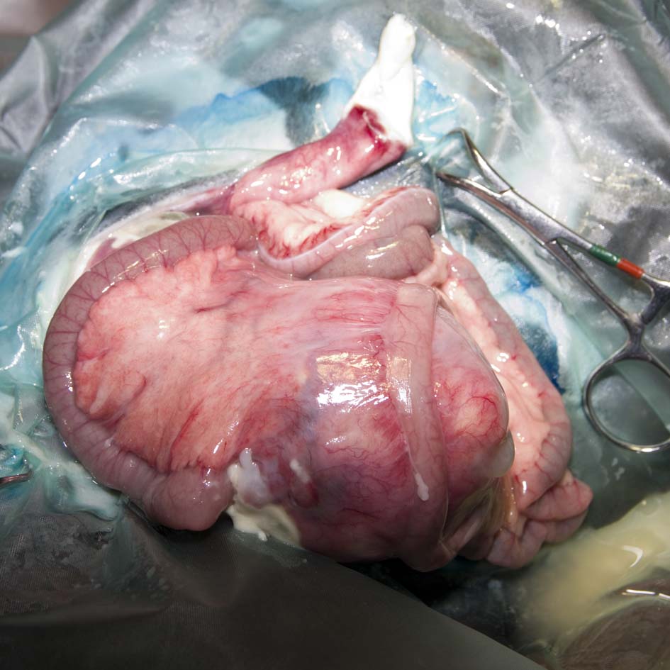 Abdominal abscesses can develop in some rabbits. They can become large and adherent to the neighbouring structures such as intestines. They can be difficult or impossible to remove without bursting them. Many are inoperable.