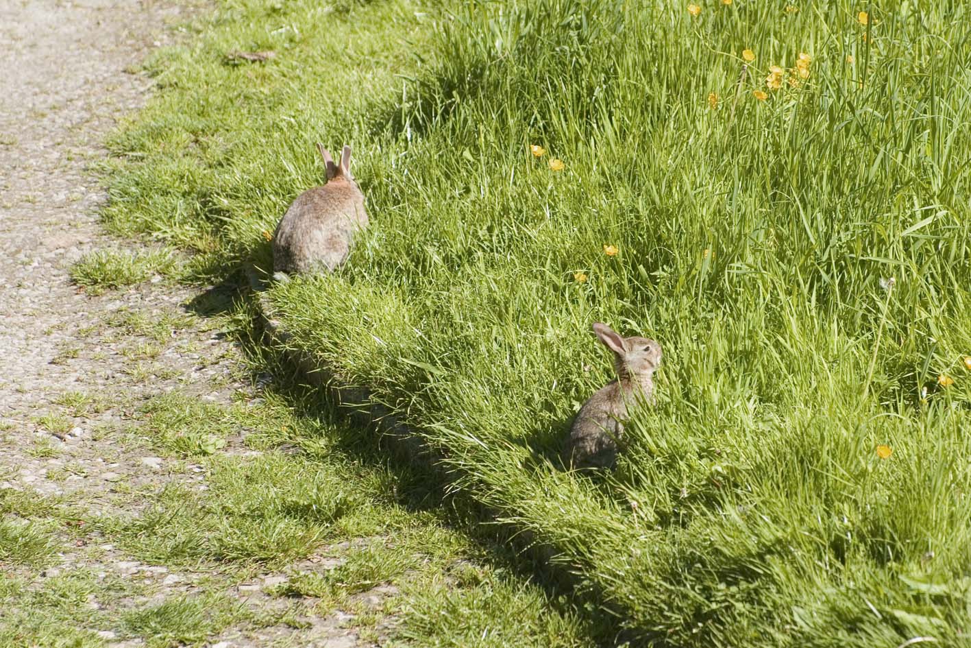 Although it is often recommended that young rabbits should not eat any leafy green foods until they are 6 months old, the advice doesn't make sense. It may apply to rabbits kept in crowded conditions with a low fibre diet and many environmental pathogens but for rabbits with access to leafy green plants, it does not apply. Wild rabbits start to eat grass and other plants as soon as they emerge from the nest.