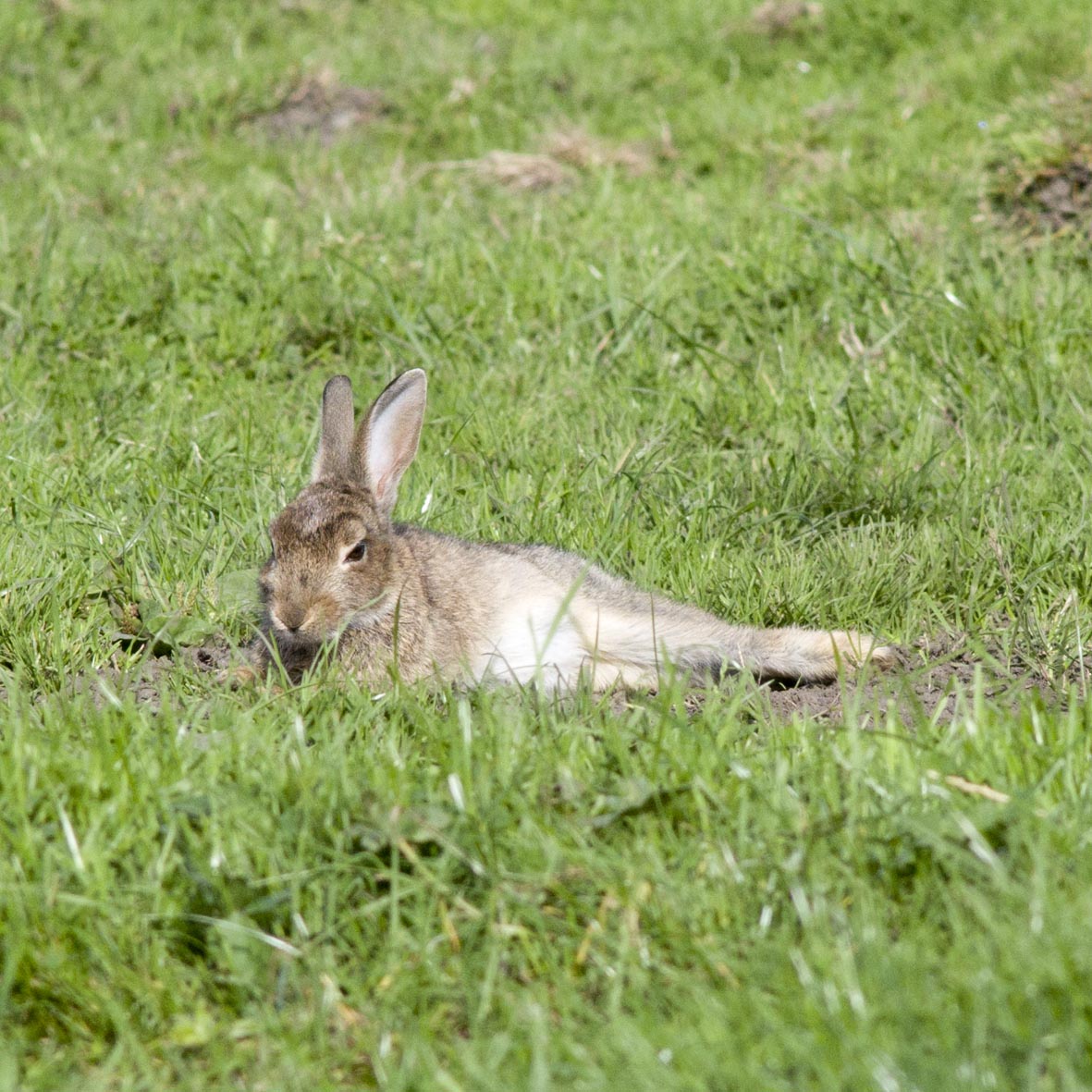 Rabbits appear to enjoy sunbathing. This healthy rabbit is lying stretched out, half asleep in the sunshine. It is tempting to assume that it is topping up its vitamin D level but like the rest of us it probably just enjoys lying in warm calm sunshine.